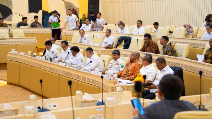 JAKARTA,papuadeadline.com – Gubernur Papua Matius D. Fakhiri menghadiri Rapat Kerja dan Rapat Dengar Pendapat Panitia Kerja (Panja) Perbatasan Negara Komisi II DPR RI yang digelar di Ruang Rapat Komisi II DPR RI, Rabu (21/1). Rapat tersebut membahas arah kebijakan, isu strategis, serta program pembangunan kawasan perbatasan di masing-masing daerah.