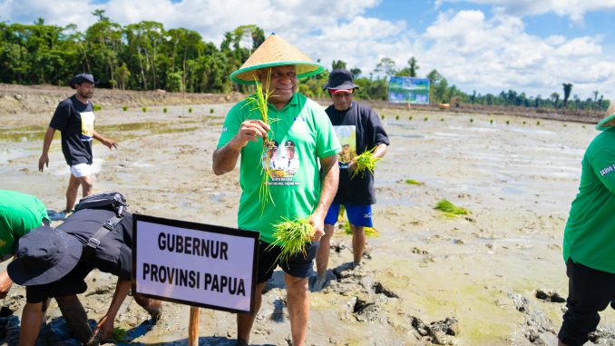 Gubernur menegaskan, Papua sebenarnya memiliki potensi besar untuk swasembada beras. Dari target nasional 50.000 hektare, beberapa daerah di Papua, seperti Kabupaten Sarmi, Kabupaten Keerom, Kabupaten Jayapura, Kota Jayapura hanya membutuhkan sekitar 20.000 hektare lahan produktif untuk memenuhi kebutuhan beras sendiri.